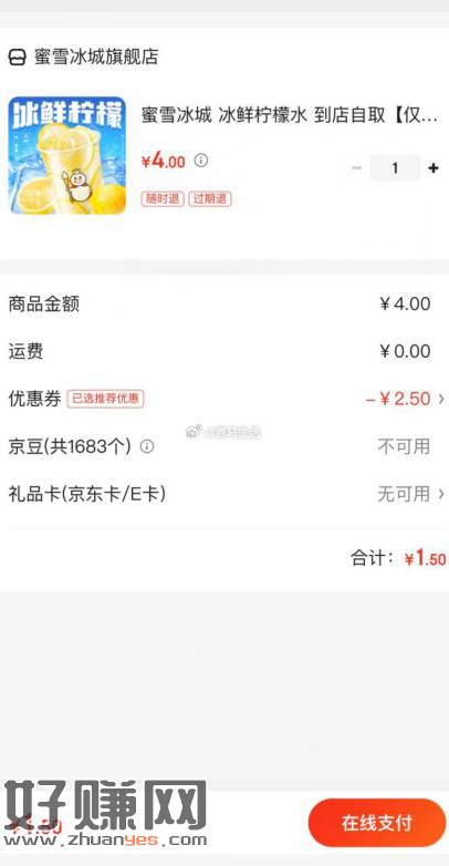 蜜雪冰城1.5亓买柠檬水!
