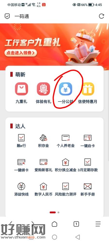 工行 广东(非深圳)试试1-5 立减金,点一分公益跳转到工行
