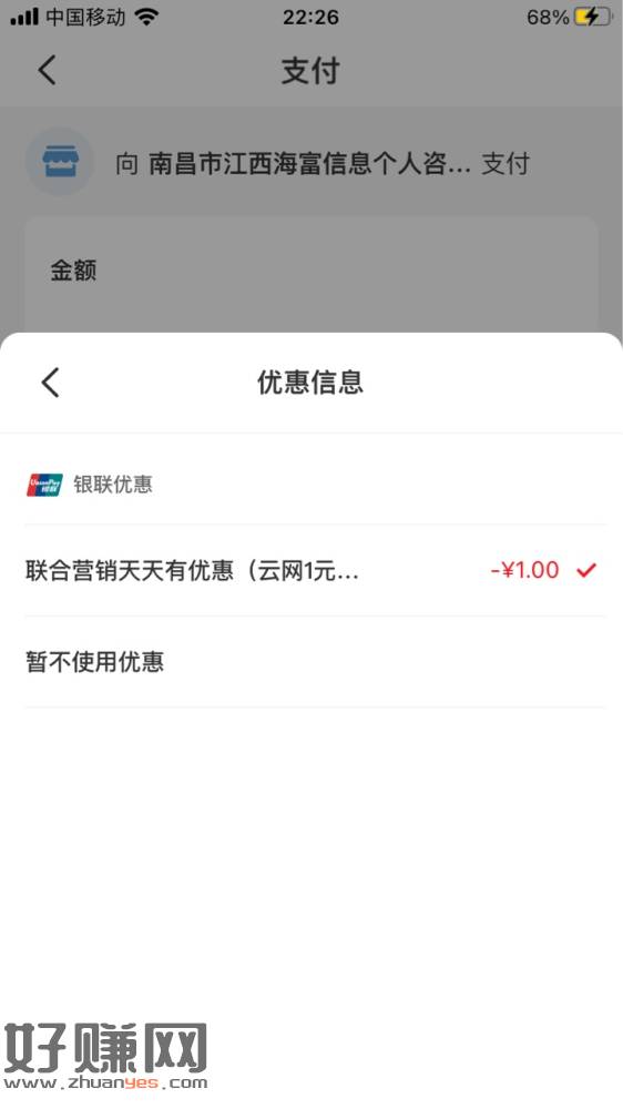 云闪付app里面U惠江西领劵,我领了10张还可以领取,然后交通银行扫支持云闪付的商家码,付款2元以上就可以,每次建1元优惠……大家自测哈反正我可以,不知道要定位江西不,我江西南昌的……