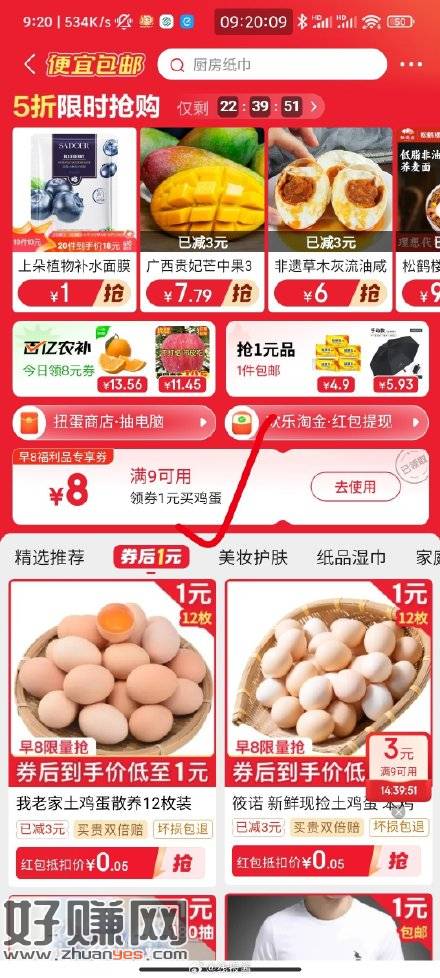 狗东APP,首页9.9包邮进去,部分人有9-8券,