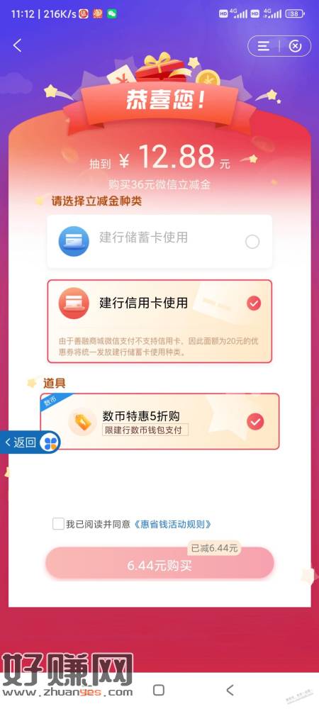 建行惠省钱可以数币5折支付,好用加果