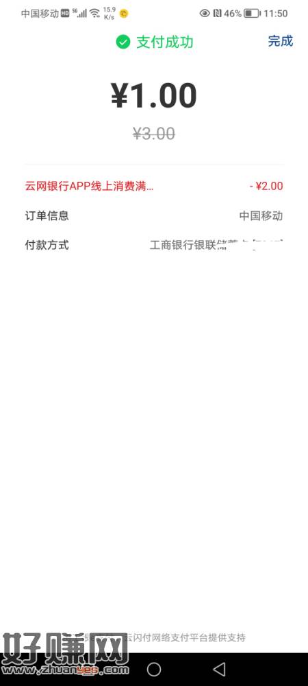 广东每天2话费,交通银行APP点U惠广东,买0.02线上3-2券,然后去中国移动选自定义充值3,选云闪付选银行跳转付款,线下3-2商家码可t不冲突