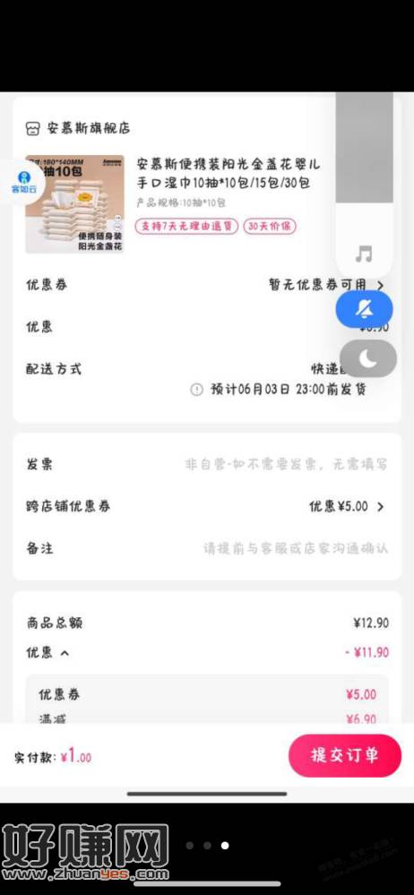 【参与方式】微信打开地址->直接领5亓券,页面有很多1亓包邮的实物