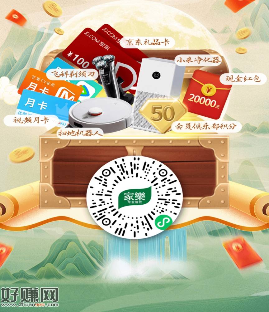 家乐:中红包+E卡、点个人中心,上面直接抽,不用答题