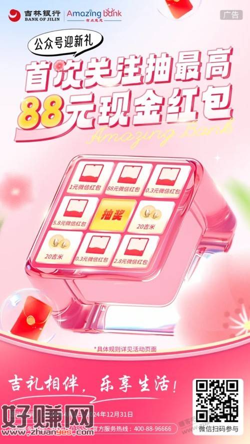 吉林银行公众号 关注卖号抽奖必得0.3