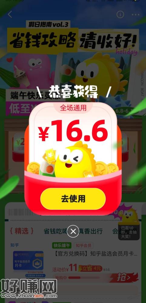 咸鱼搜快乐端午 点进去受邀用户会弹红包 可买e卡