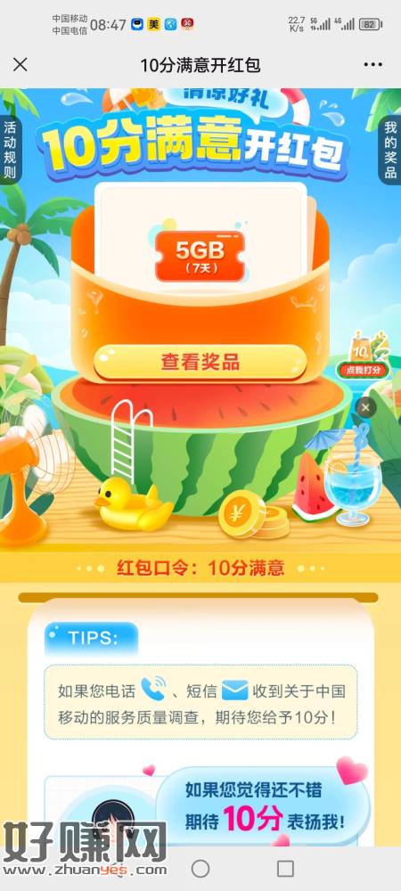 中国移动口令10满意抽流量