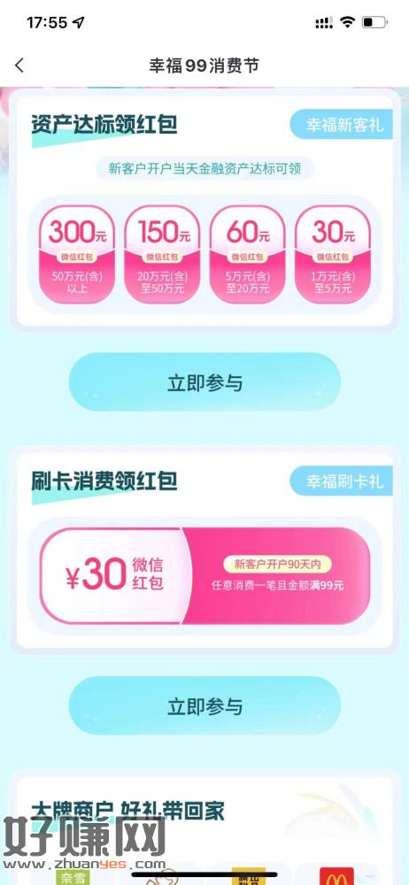 中信今年开卡的首页搜索幸福99消费节,随便刷一笔超过99就行,领30