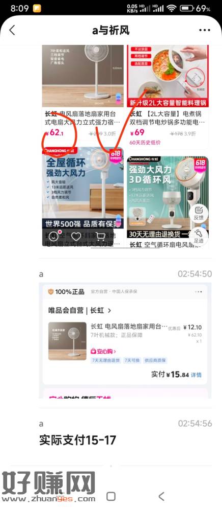 中国银行app,17.1元购62.1元长虹落地式摇头扇,现在