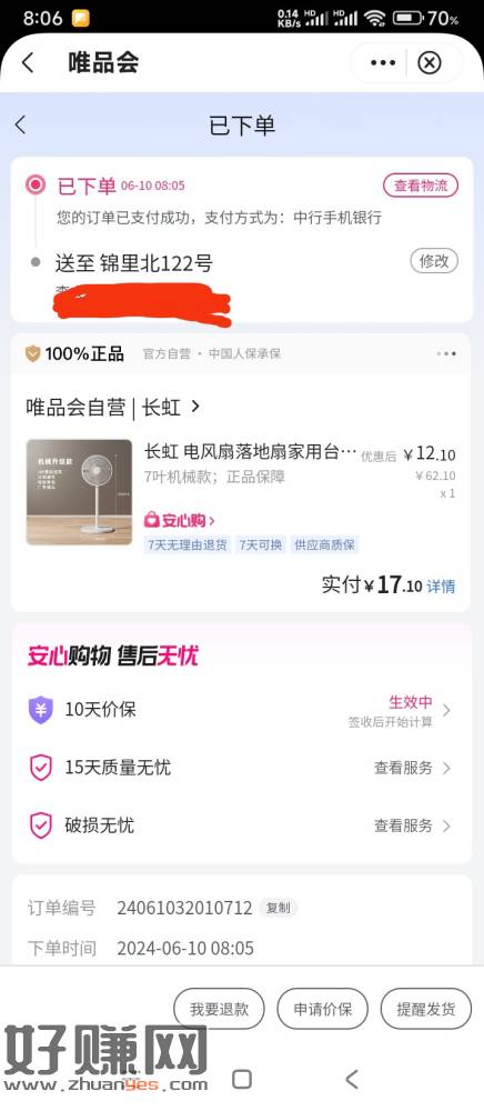 中国银行app,17.1元购62.1元长虹落地式摇头扇,现在有货
