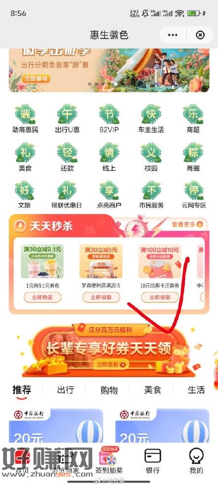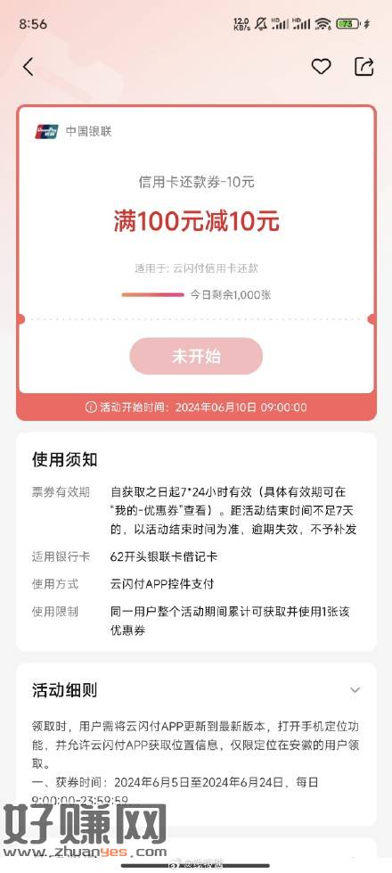 安徽地区,云闪付首要惠生徽活进去,9点有信用卡还款100-10