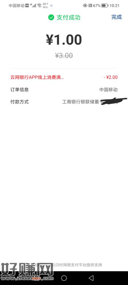 广东每天2话费,交通银行APP点U惠广东,买0.02线上3-2券,然后去中国移动选自定义充值3,选云闪付选银行跳转付款,与线下3-2商家码不冲突