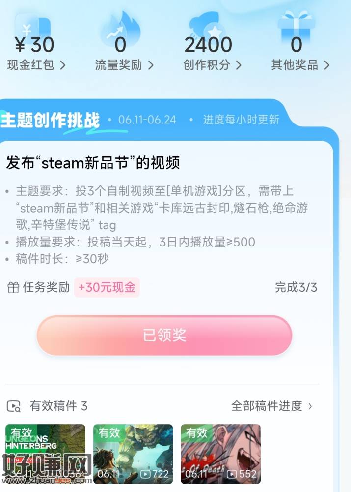 哔哩哔哩任务中心限时福利三十1h过审直接领