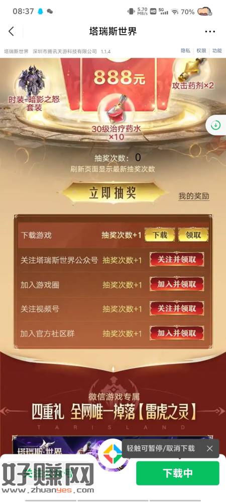冲鸭 赶紧去下载塔瑞斯世界游戏 拿红包了 QQ 微信全部上