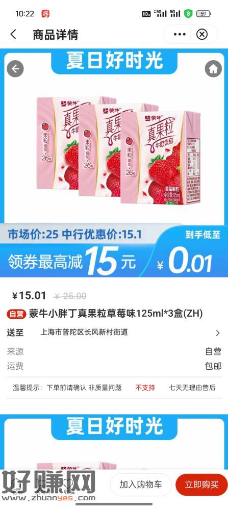 中国银行搜蒙牛,抢15券,0.01的真果粒