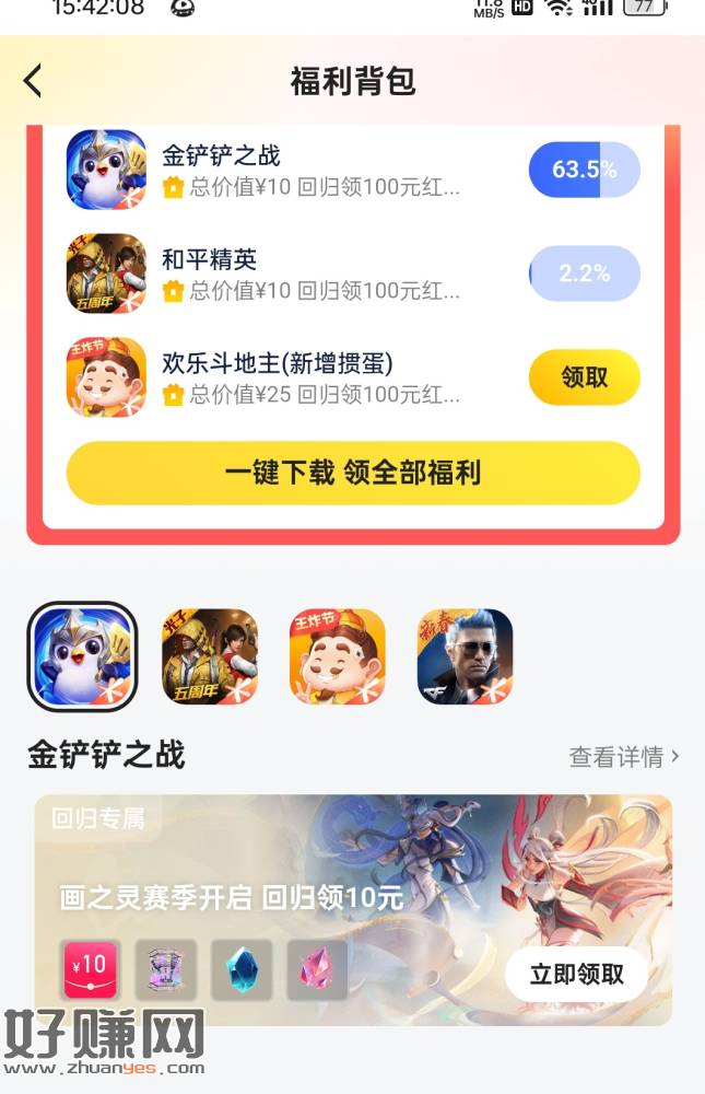 虎牙app,福利背包,先绑定角色,建议QQ,然后下载软件,嫌麻烦建议薅欢乐斗地主,下载快,1元提现,其他几个下载了可以提现3块