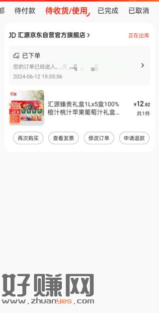 这玩意我估计你们也不感兴趣 12块5盒1L汇源果子 双地址凑单直接退 【京东】