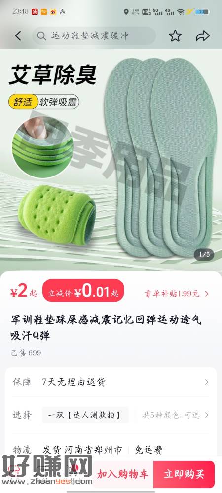 军训鞋垫踩屎感减震记忆回弹运动透气吸汗Q弹