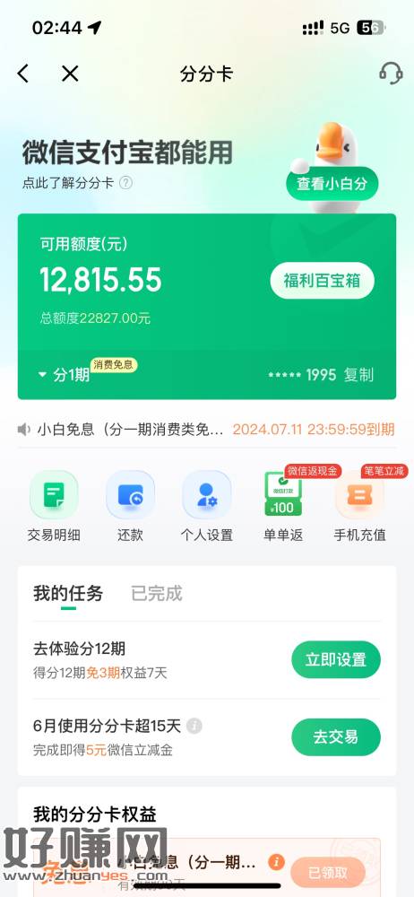 白条分分卡单单饭应该能赚几十块钱看个人费率了!!