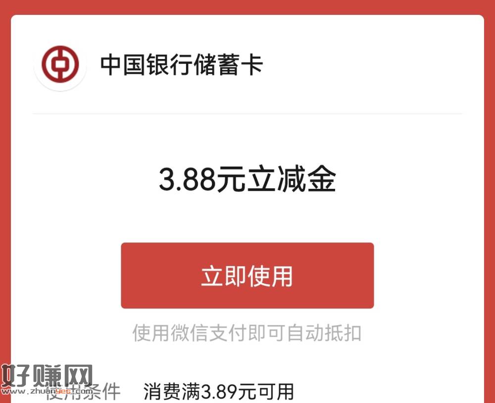 中行福仔明信片兑换3.88立减,现在很卡,30万名额慢慢卡吧。