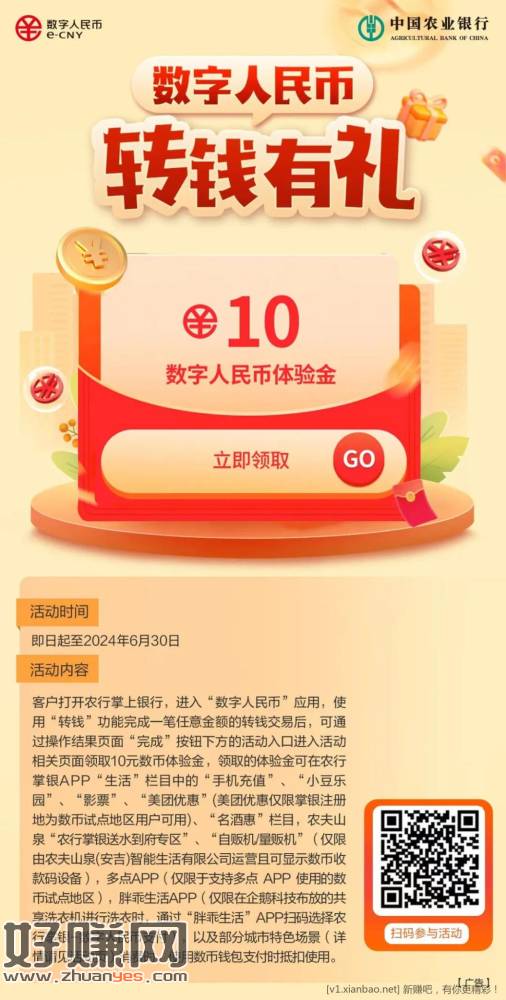 数字人民币,转钱有礼,10元数币体验金等你来领