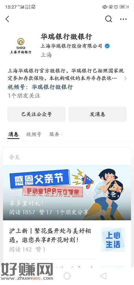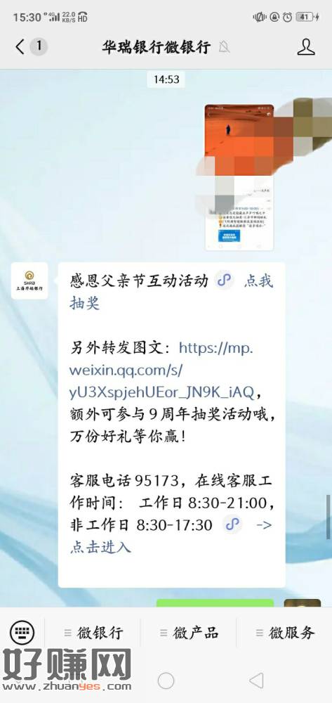 华瑞微银行公众号,父亲节推文,按要求转发朋友圈,可以私密。截