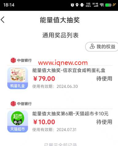 中信APP-底部【会员】-顶部【能量值】-进入能量值抽大奖,做任务150能量抽一次