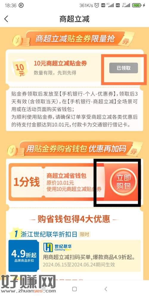 交行活动中心;本地活动【浙江卡】!领上面10的贴金,去买那个1分钱的包!然后往下拉领5立减金【限浙江卡除宁波】