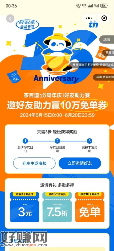 茶百道免单,微信小程序,主页横幅,往左滑第三个活动,怎么没人发,今天刚开始