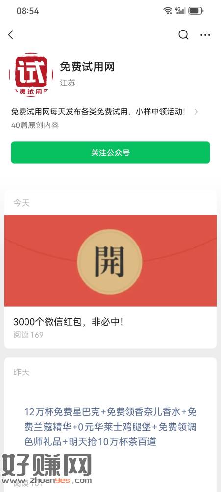 关注公众号—免费试用网,发送好运不要停,点我划黄线的内容,非必中,中了就是0.3,嫌弃0.3的可以别去,也可以送给我。