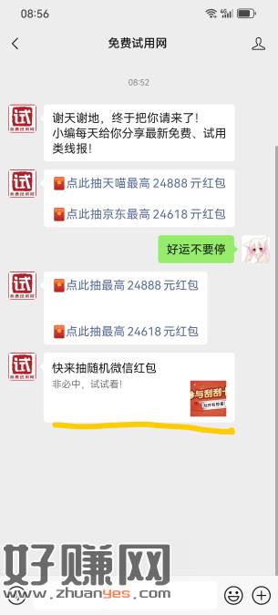 关注公众号—免费试用网,发送好运不要停,点我划黄线的内容,非