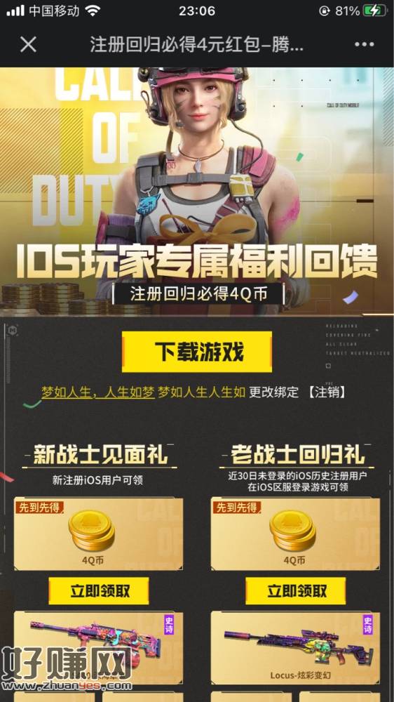 ios注册包4r,QQ端iOS注册包4Q币,回归礼4Q币,大家记得晚12点准时抢包,还没注册的赶紧注册好,