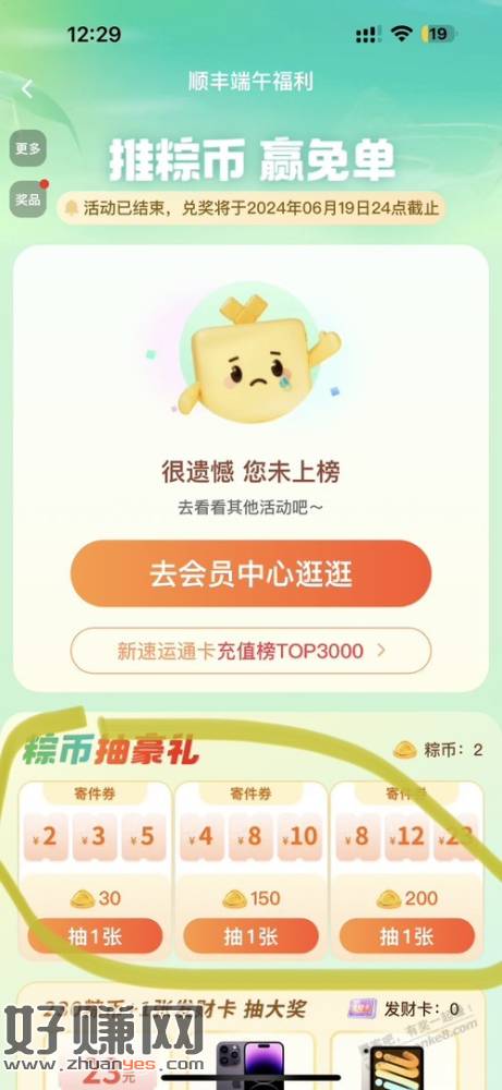 顺丰app的端午节活动,还有粽币的朋友记得去抽奖,我抽到了12+10的无门槛。之前没参加的不用看了,活动结束了