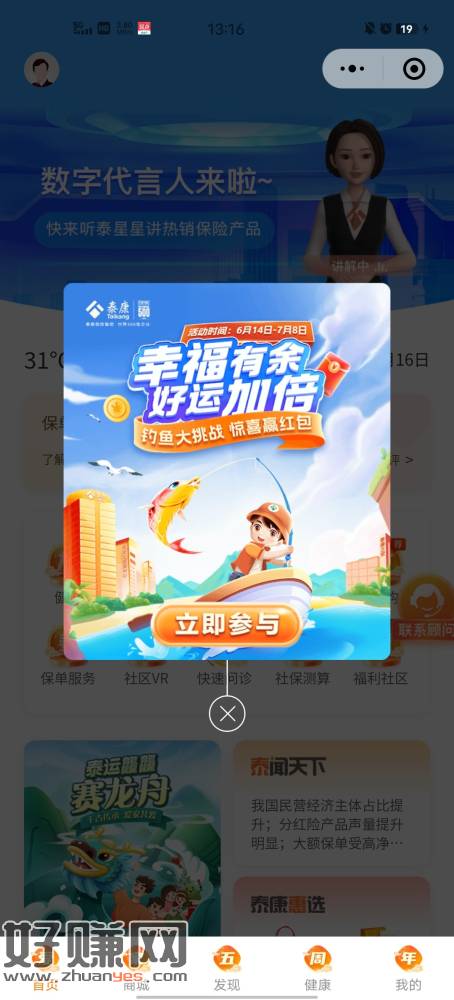 泰康e保小程序 必中0.3 拉一个小号多一次机会