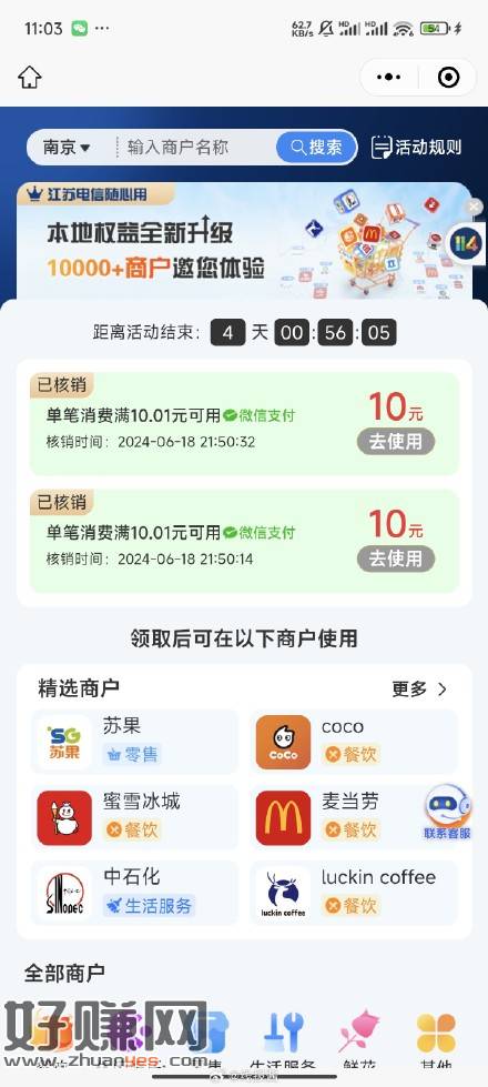 江苏电信试试,20立减金,限制商户,可以冲石化钱包