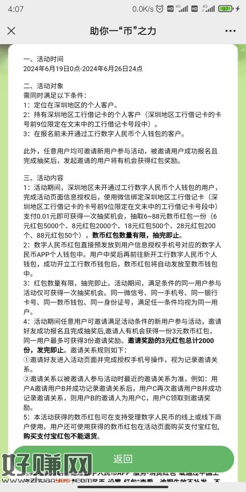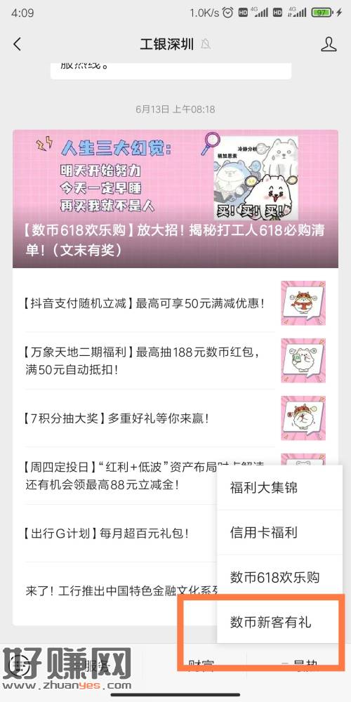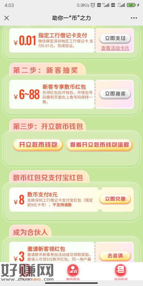 ②公众号右下角新客有礼;用深圳卡支付1分钱后抽完数币红包后再去开钱包。4类就行了!