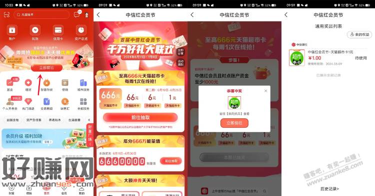 [ 中信银行红会员节必中1-666元天猫超市卡 ]