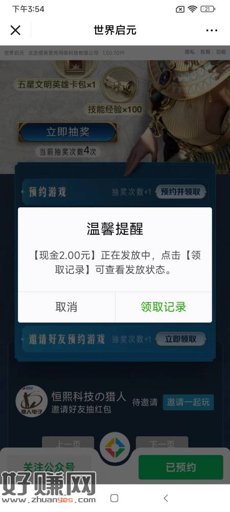 荣耀手机应用中心玩30秒领5元现金红包,