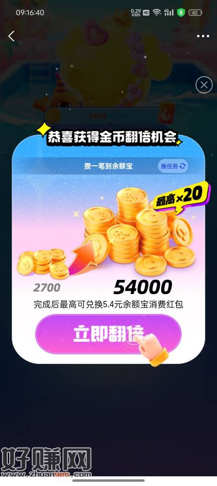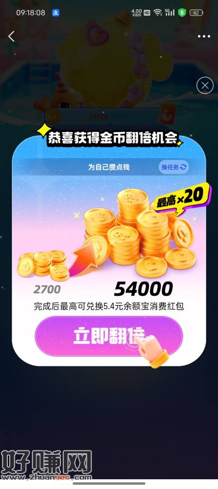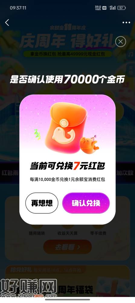 每天红包雨和浏览任务分享任务刷新 换立减金需要下载app