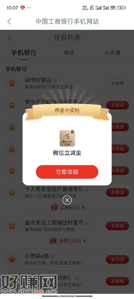 限湖南工行,任务中心,湖南智慧云,5元