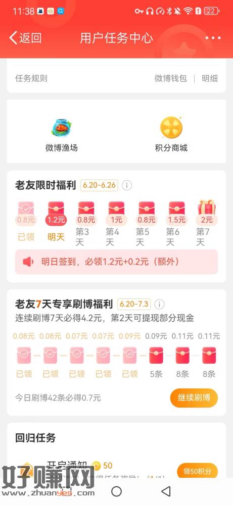 大家可以去看一下不常用的微博 有回归奖励