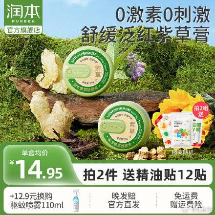 14.9,润本 儿童紫草舒缓膏 15g*2盒