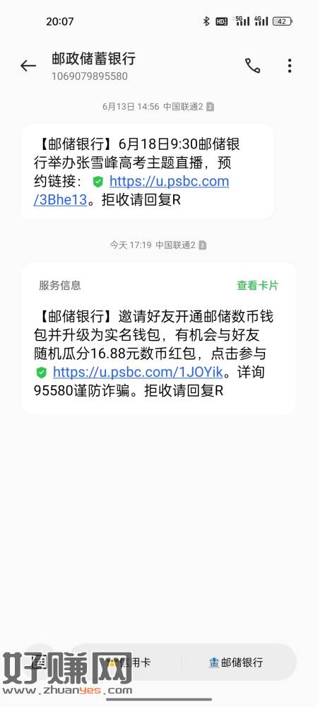 【邮储银行】邀请好友开通邮储数币钱包并升级为实名钱包,有机会与好友随机瓜分16.88元数币红包,点击参与