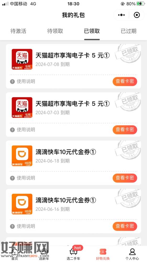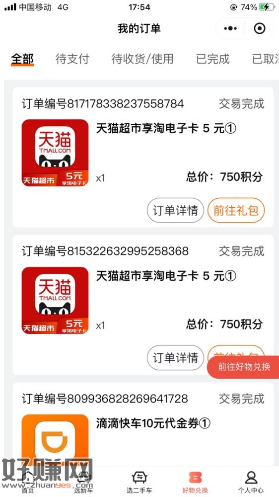 小程序(好奇车生活)每日签到抽奖积分可兑换红包.卡密,七天兑换一次,多号多做