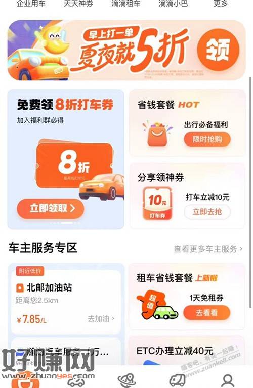 点立即打车首页横幅有夏季打车走的是30有的是20打车卷需要上午打一单晚上免单