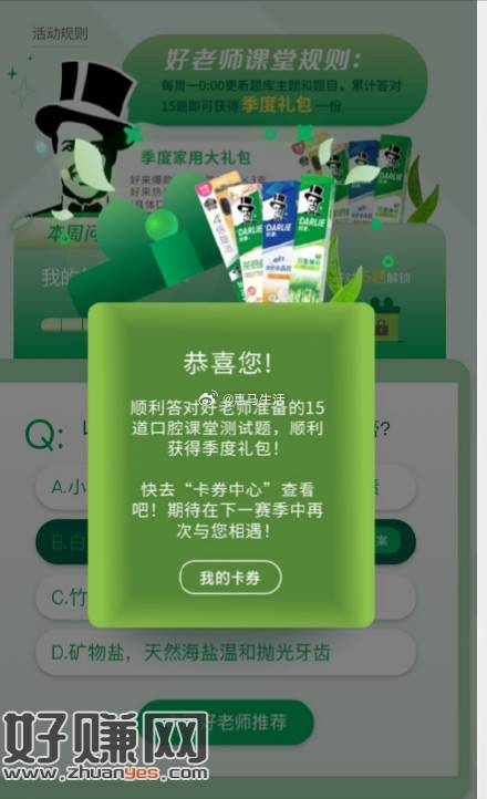黑人牙膏每周答题领季度礼包