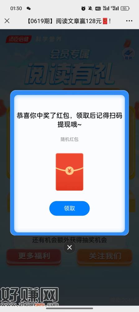 汤臣倍健阅读活动,进去下拉,可以抽,不必中