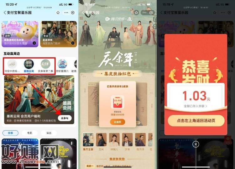 【支付宝聚星乐园集卡得多个红包】支付宝搜索“支付宝聚星乐园”->前三个挨个去浏览集卡,每个集齐卡片有0.3~5亓红包,三个加起来大概2亓左右