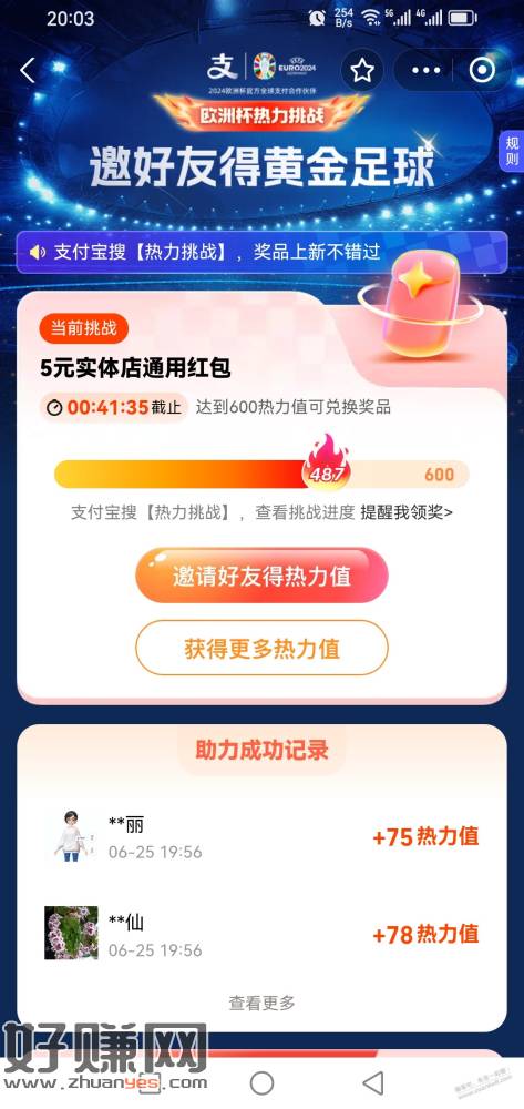 支付宝搜热力挑战,大概不到十个人头就能领到5