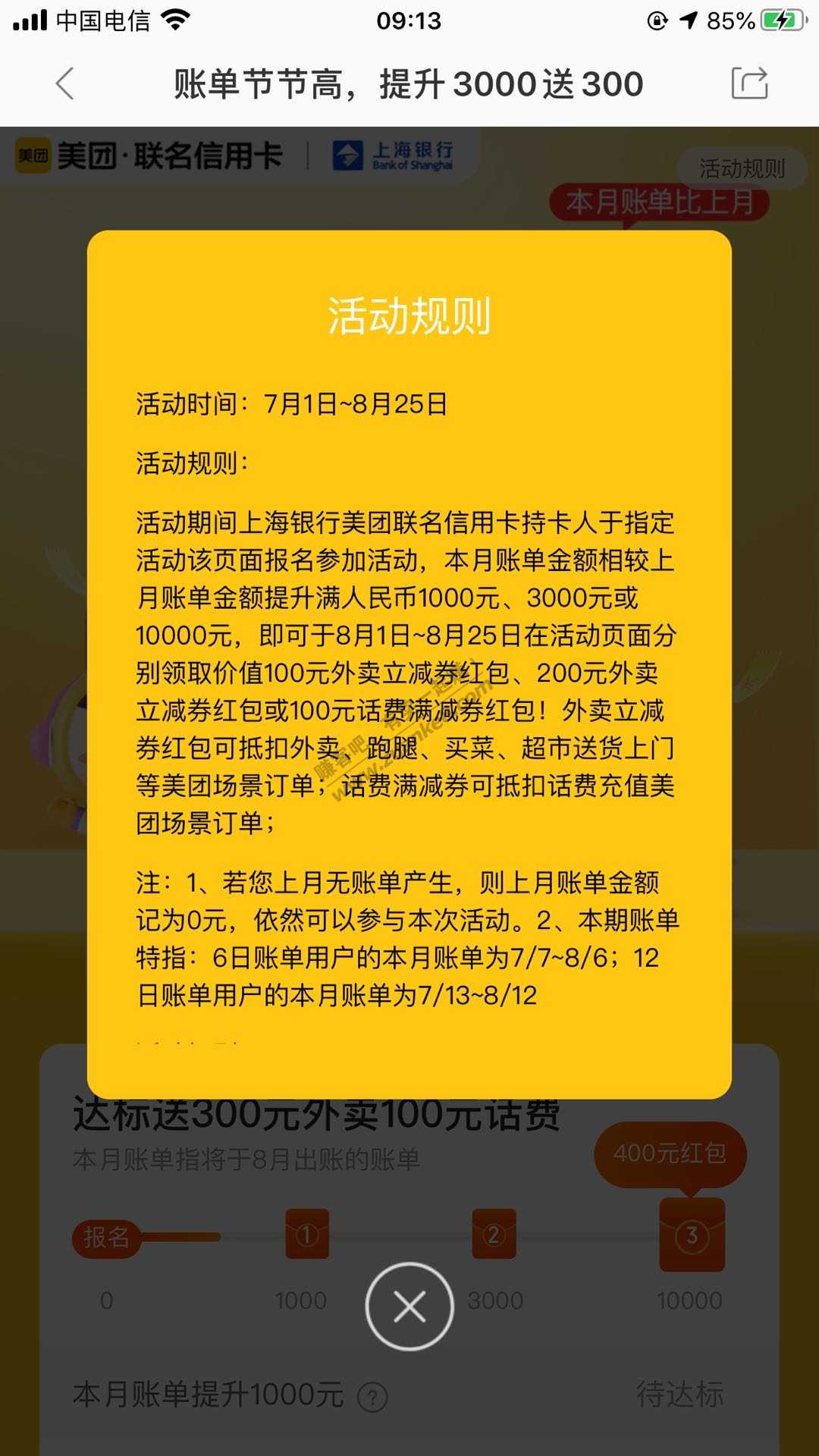 美团7月活动比5,6月份缩水不少,但还是值得撸,问:我7月是不是要刷此卡1万3千多才能达标提升1万那个?